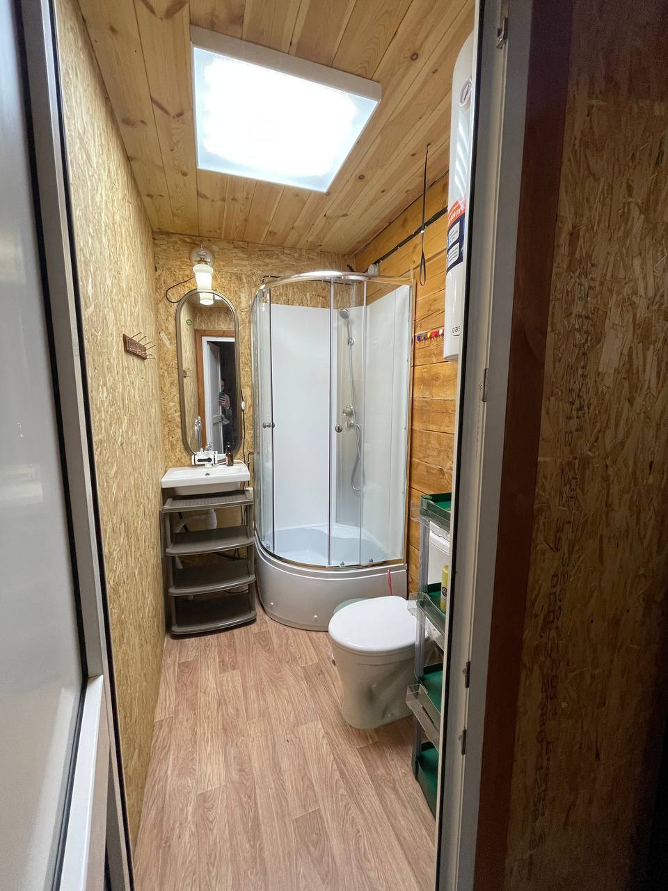 Душ и туалет находятся в непосредственной близости на улице, рассчитанные на 4 номера.